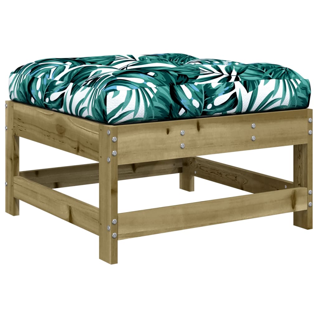 These wooden garden footstools, standing out with the slatted design and soft cushions, will make a great addition to your garden, patio, or terrace for enjoying a cosy time with your family or friends. Impregnated wood: Solid pine wood is a beautiful natural material. Pine wood has a straight grain, and the knots give the material its signature, rustic look. Impregnation is a preservation process that is carried out by using autoclaves. The pressure-treatment increases resistance to decay and weather.Sturdy and stable frame: The wooden frames make the footstool sturdy and stable for daily outdoor use.Soft cushion: The thickly padded seat cushion of the footrest adds the utmost comfort.Modular design: The outdoor footstool is flexible and easy to move around. You can combine it with other modular segments in the webshop to create your own personal garden lounge set configurations! Good to know:To make sure your outdoor furniture stays beautiful, we recommend protecting it with a waterproof cover.