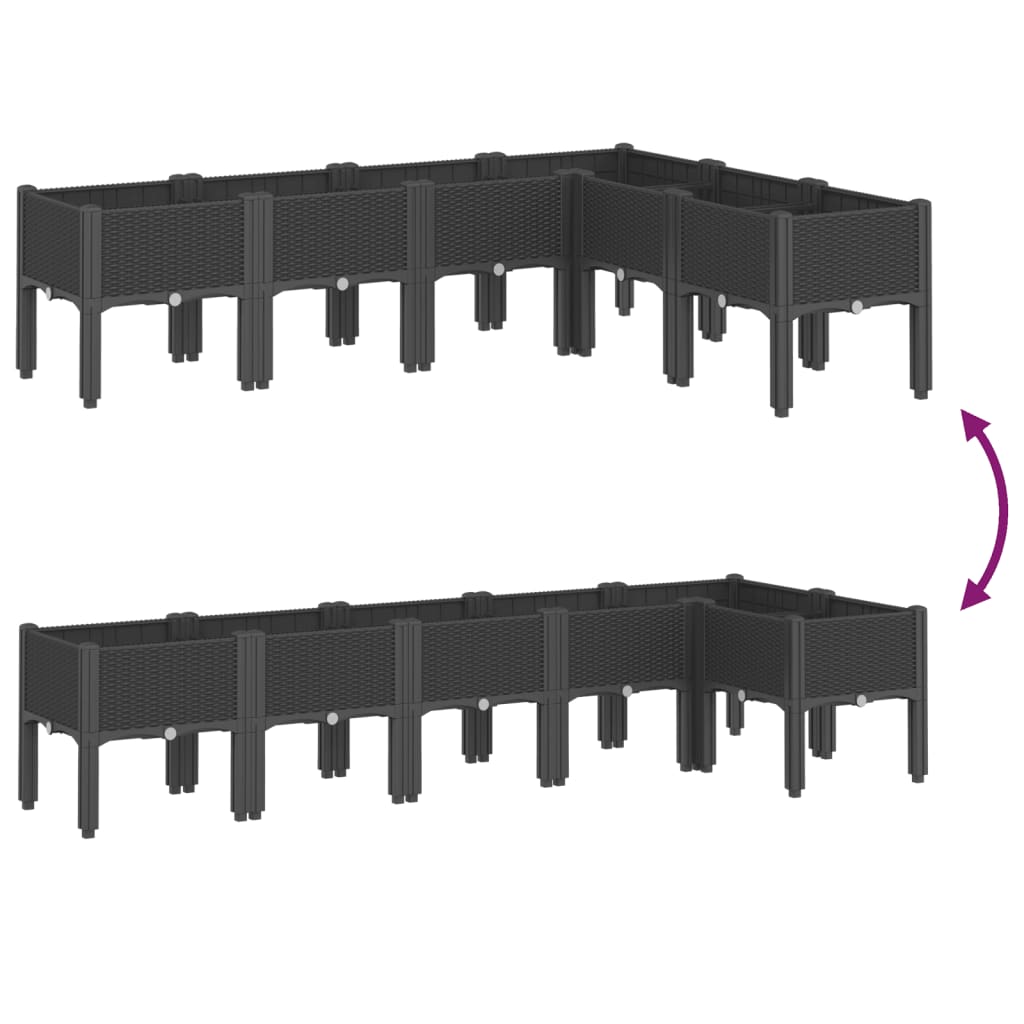 This garden planter is an excellent choice for climbing plants in your garden, patio and terrace. Durable material: Polypropylene is a popular plastic that is also one of the most used materials in outdoor furniture. It's lightweight, tough, and resistant to impact.Generous capacity: The outdoor planter provides plenty of space for growing all your vegetables, flowers and other plants.Bottom design: The ideal bottom layer helps retain moisture and allows for easy drainage.Beautiful rattan look: The patio planter is designed with a rattan look, bringing an elegant charm to your living space.Elevated design: The elevated design of this planter box can protect your plants from weeds and pests.