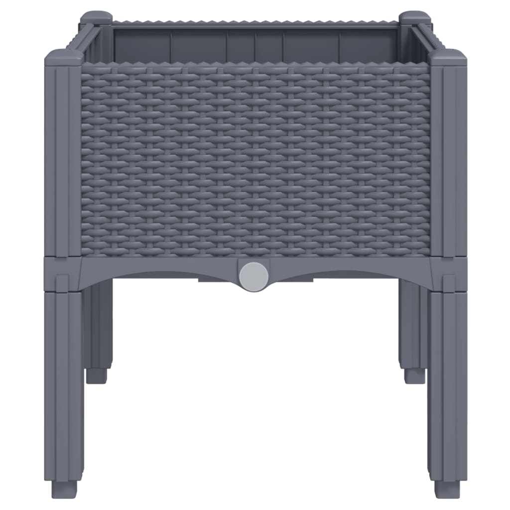 This garden planter is an excellent choice for climbing plants in your garden, patio and terrace. Durable material: Polypropylene is a popular plastic that is also one of the most used materials in outdoor furniture. It's lightweight, tough, and resistant to impact.Generous capacity: The outdoor planter provides plenty of space for growing all your vegetables, flowers and other plants.Bottom design: The ideal bottom layer helps retain moisture and allows for easy drainage.Beautiful rattan look: The patio planter is designed with a rattan look, bringing an elegant charm to your living space.Elevated design: The elevated design of this planter box can protect your plants from weeds and pests.
