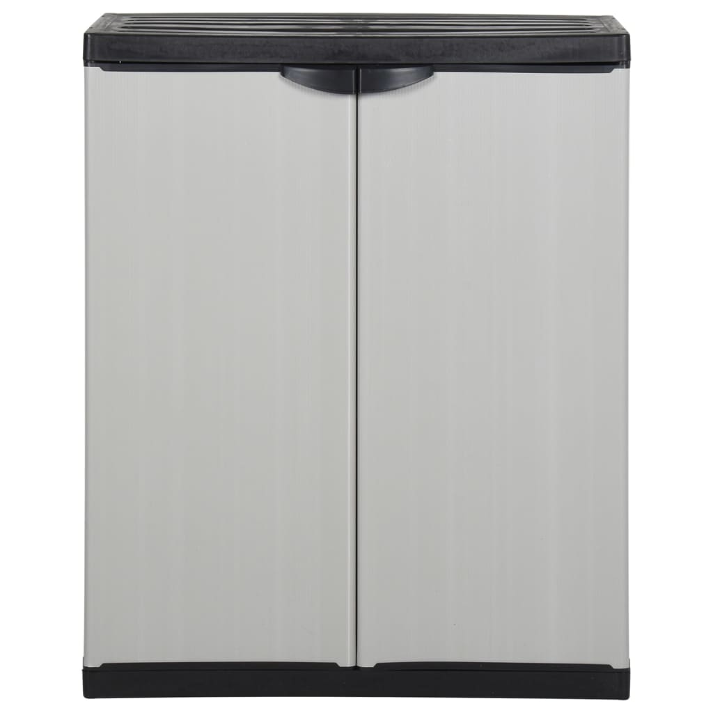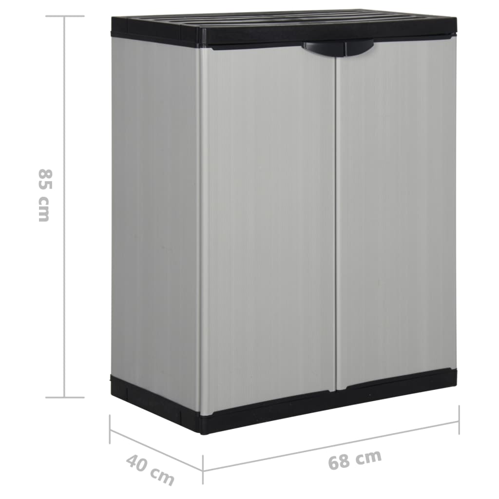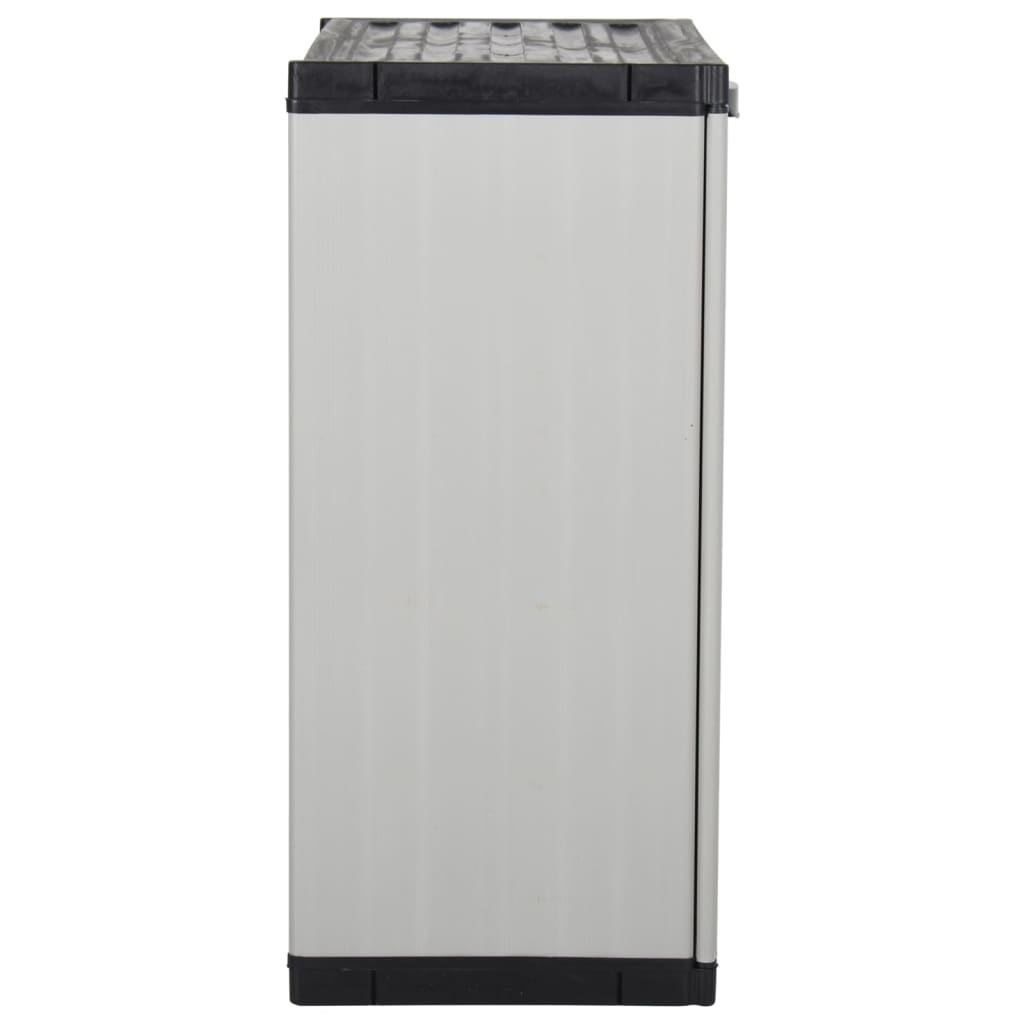 This garden storage cabinet blends into any decor with its timeless design. It is ideal for using in the garden or on the patio, etc. This outdoor cabinet is made of PVC and PP (Polypropylene), making it sturdy, durable and easy to clean. The plastic cabinet offers ample storage space to keep your essential items organised and within reach. The garden cabinet can be locked with a padlock for added safety (the lock is not included). Meanwhile, the tool cabinet has a compact design and makes the most use of limited space.