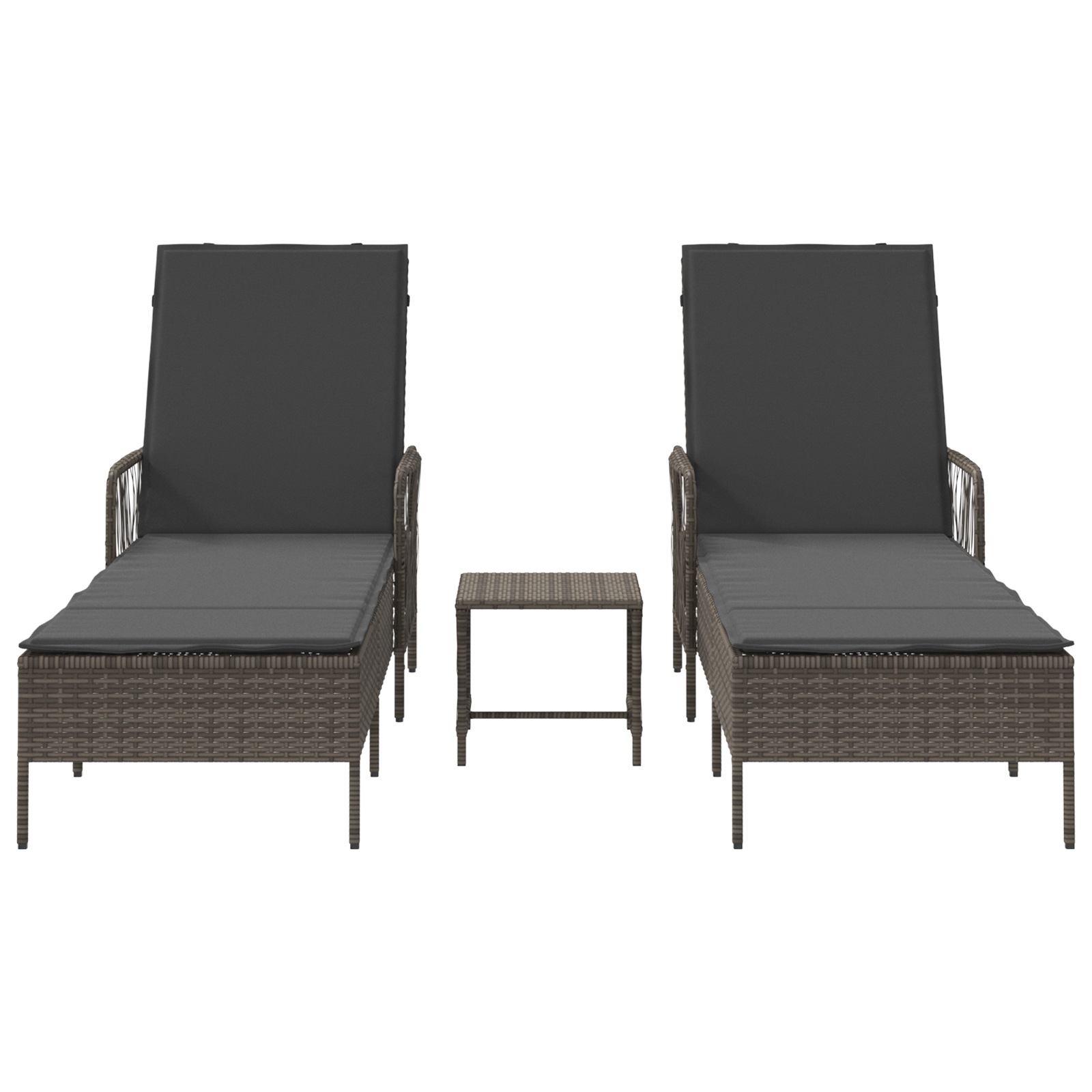 This Adjustable Sun Lounger Set in Grey and Dark Grey combines both style and comfort, creating an inviting retreat for outdoor relaxation. Perfect for sunbathing, reading, or catching up with friends, this lounger set features a sophisticated design that will complement any garden, balcony, or patio. Multi-Position Backrest: Each lounger comes with a multi-position backrest that allows for customizable reclining, ensuring every individual can find their perfect lounging position. UV-Resistant Materials: Crafted with high-quality, UV-resistant synthetic poly rattan and a sturdy powder-coated steel frame, this sun lounger set is built for outdoor durability while maintaining an elegant appearance. Sleek Textured Finish: The sleek grey and dark grey color scheme adds contemporary flair to any outdoor arrangement, presenting a stylish solution for relaxing moments outdoors. Compact Folding Design: Thanks to the foldable structure, these loungers can be stored effortlessly when not in use or easily transported, making them the perfect choice for travel or limited outdoor spaces. Comfortable Cushioned Seats: Each lounger features a weather-resistant cushion with zipper closure, offering cushioned comfort for extended periods of outdoor enjoyment.