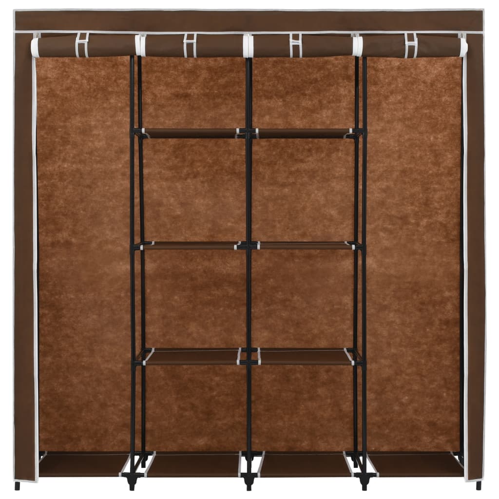 This practical clothes rack provides an ideal storage solution for your clothes and shoes. It is characterized by a sturdy iron frame, making the clothes rack easy to move around and exceedingly durable. Additionally, it has four compartments, offering enough space to keep your bags, shoes or small items organised and within reach. The fabric cover with zippers will protect your clothes from dirt and dust.