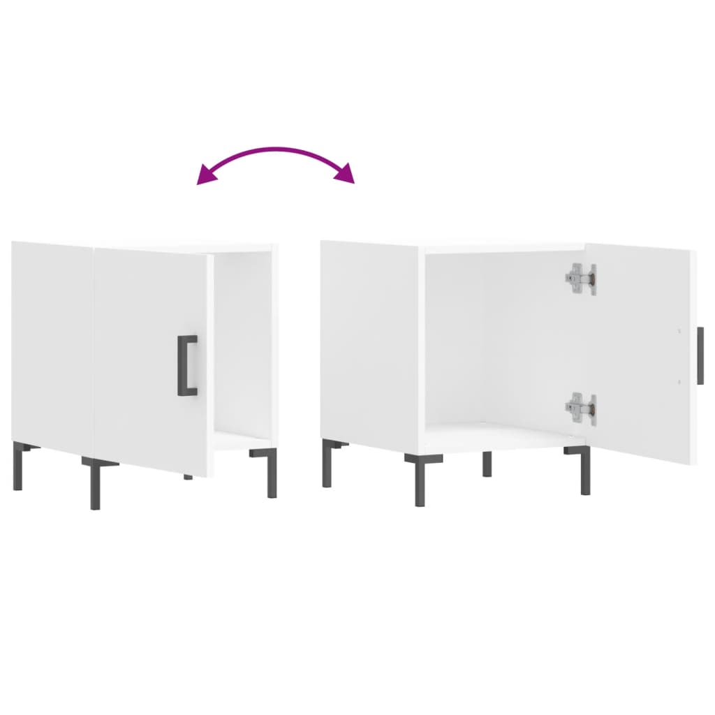 Introduce an air of modern charm to your interior with this bedside cabinet! Durable material: The engineered wood is of exceptional quality with smooth surface and also features strength, stability and resistance to moisture. Spacious storage space: The bedside cabinet has a compartment, providing spacious storage space to keep your books, multimedia appliances and other items within reach.Displaying function: You can also place your favourite photos, decorations or flowers on top of the side cabinet to enrich your life. Metal feet: The metal feet add a calm style to your interior while ensuring stability.Practical door: Keep your essentials free from dust by hiding them behind the door. Warning: To prevent it being overturned, this product must be used with the provided wall attachment device.