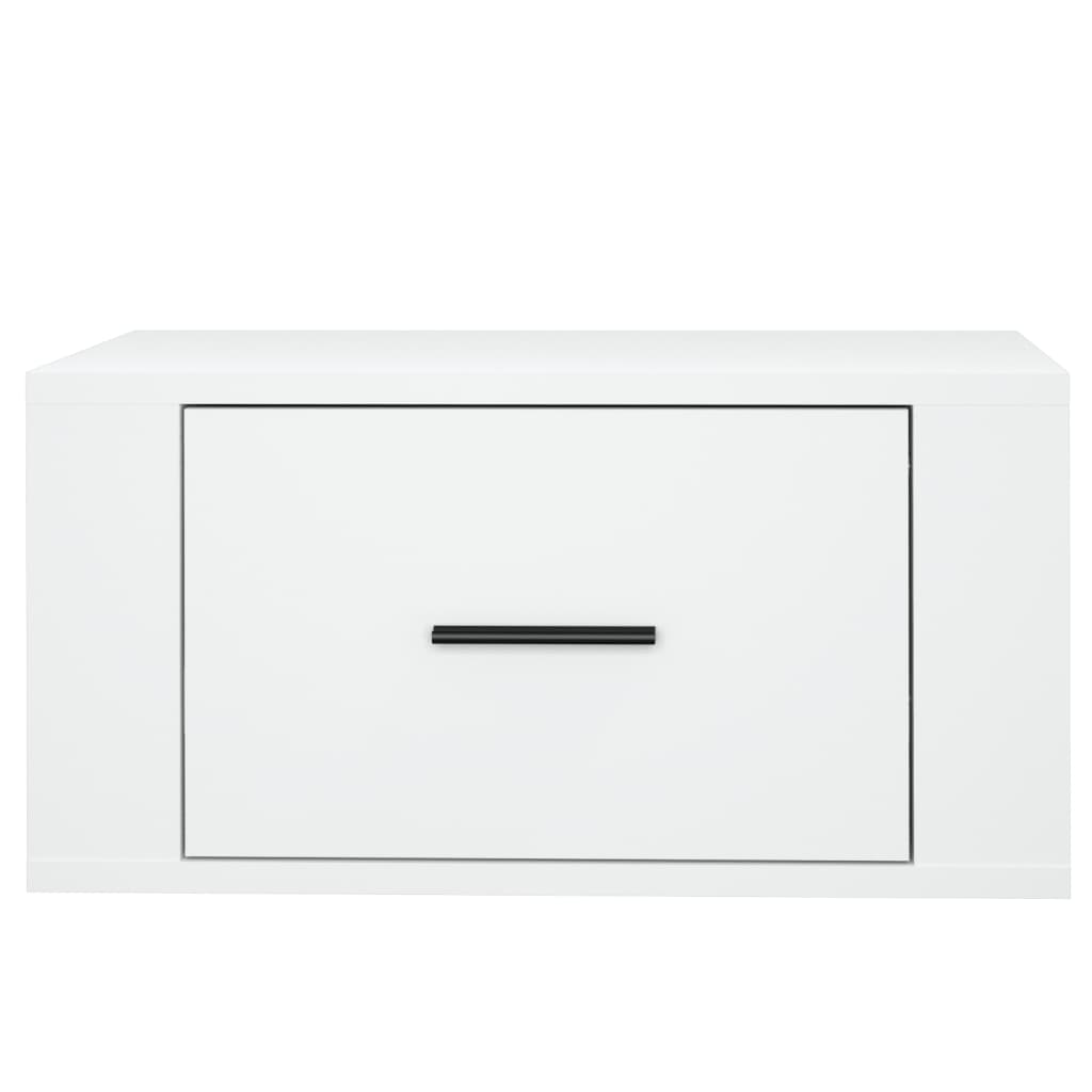 This wall-mounted bedside cabinet with an elegant design makes a timeless addition to your interior decor. Durable material: The engineered wood is of exceptional quality with smooth surface and also features strength, stability and resistance to moisture. Ample storage space: This floating bedside cabinet provides enough space for you to keep things organised and within easy reach. Wall-mounted function: The floating bedside unit doesn't take any floor space. You can hang it on the wall easily.Sturdy top: The top of the wall hung bedside cabinet is perfect for displaying your decorative items, picture frames and potted plants. Note:Screw(s) and plug(s) for inside the wall are not included. Seek and use screw(s) and plug(s) suitable for your walls. If you are uncertain, seek professional advice. Read and follow each step of the instruction carefully.Each product comes with an assembly manual in the box for easy assembly.