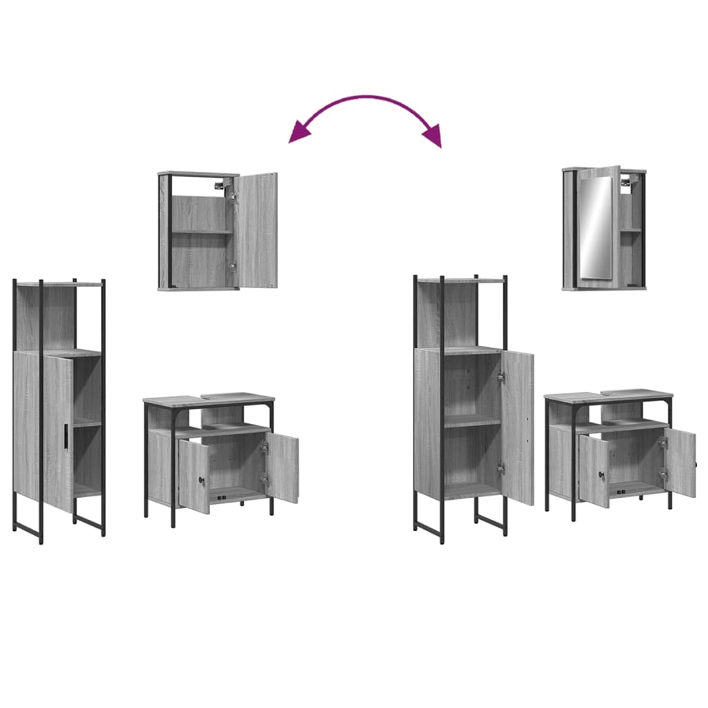 This handy bathroom furniture set, featuring spacious storage space, is an excellent addition to your bathroom, giving it a tidy and striking appearance! Durable material: The engineered wood is of exceptional quality with a smooth surface and features strength, stability and resistance to moisture.Ample storage space: The bathroom furniture provides various storage options and spacious space for you to store items in your bathroom.Wall-mounted function: The washroom mirror cabinet can be wall-mounted to save floor space, which makes it especially suitable for rooms with limited space.Space-saving design: The top of the bathroom cabinet is ideal for placing the sink so that you can fully utilise the vacant space under the sink.Clear image: The glass mirror face provides a fine and non-distorted reflection, so it is suitable for making up, shaving or checking the suit before going out. Warning:To prevent it from tipping over, this product must be used with the provided wall attachment device. Good to know:Screws and plugs for inside the wall are not included. We advise to find and use screws and plugs suitable specifically for your walls. If you're not sure, you can consult with a professional. Please read and follow each step of the instructions.