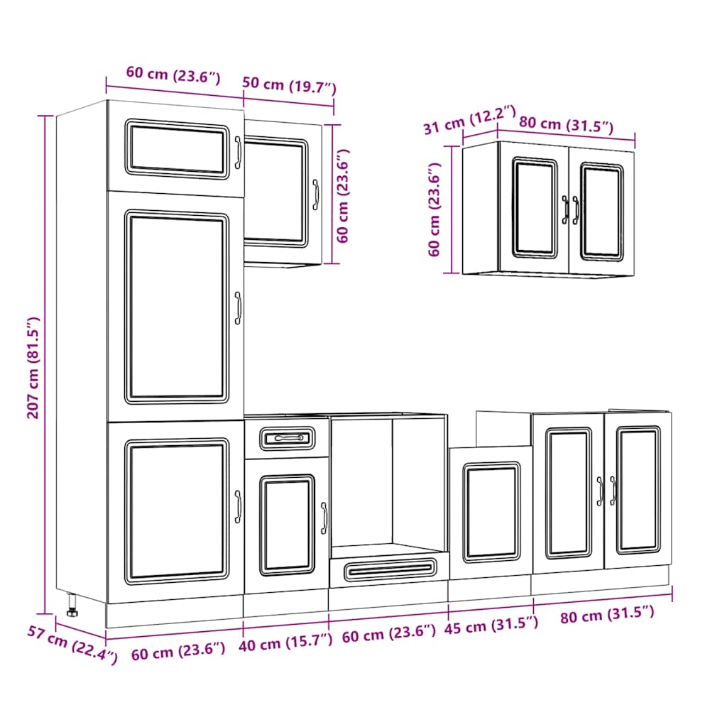 7 Piece Kitchen Cabinet Set Kalmar Brown Oak Engineered Wood