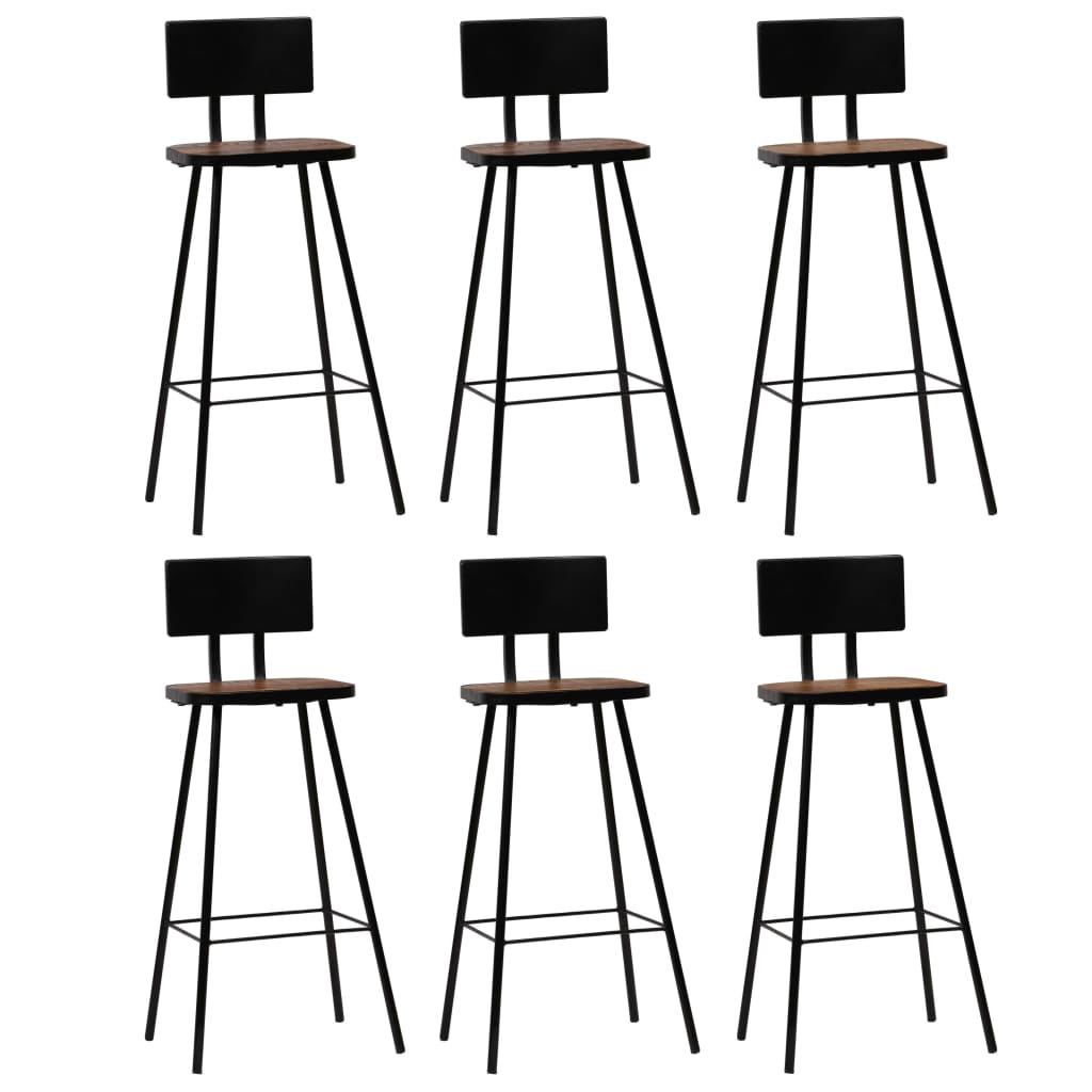 This wooden bar set in a retro look oozes industrial style and will make a striking addition to your decor. The bar table and chairs are made of solid reclaimed wood that has been sourced from joists, floors and support beams from old buildings being demolished, and can consist of different types of wood like pine, teak, beech, oak, cedar, mango wood, acacia, etc. This means the reclaimed wood retains the characteristics of these different types of wood. Reclaimed wood is already aged, weathered and dried, so it doesn't shrink or bend. The beautiful wood grains make every piece of furniture unique and slightly different from the next. Signs of wear and visible grain structure also give the set its own history and a unique look. Every step of the process is carried out with the greatest care, be it polishing, painting or lacquering. The steel frame ensures the set's sturdiness and stability but contributes to its industrial style as well. The footrests add to the seating comfort. Assembly is easy. Delivery includes 1 bar table and 6 bar chairs. Important note: Colours vary from piece to piece, making each of our items unique. The delivery is random, ensuring the exclusivity and individuality of your product.