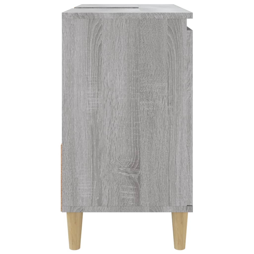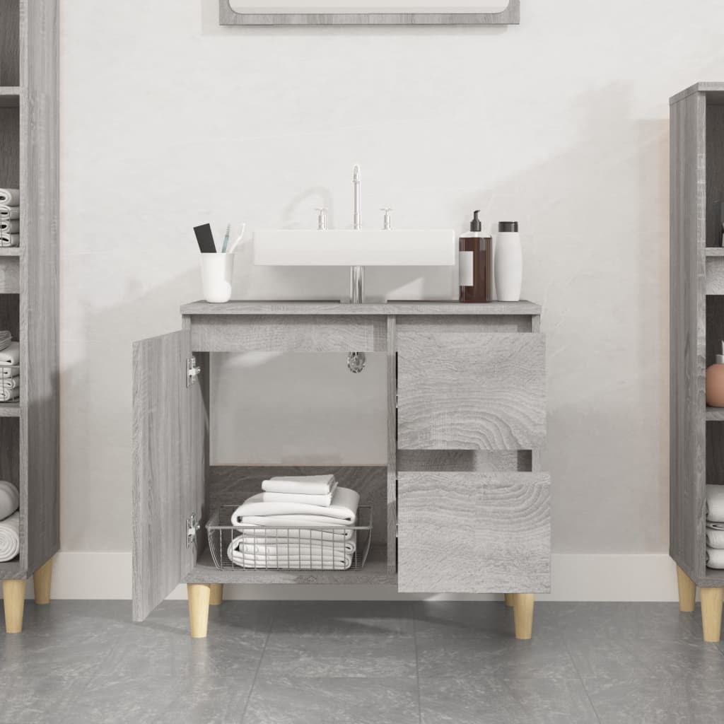 This bathroom cabinet is a great choice for your bathroom, making it tidy and organised! Durable material: The engineered wood is of exceptional quality with smooth surface and also features strength, stability, and resistance to moisture.Ample storage space: The bathroom furniture has 2 drawers and 1 compartment with door, offering various storage options and extra space to store items in your bathroom.Wooden feet: The solid eucalyptus wood feet give the bathroom cupboard a natural and pleasant look while ensuring stability.Flexible design: You can install the door and drawers either on the left side or right side based on your own needs. Warning:To prevent it being overturned, this product must be used with the provided wall attachment device.