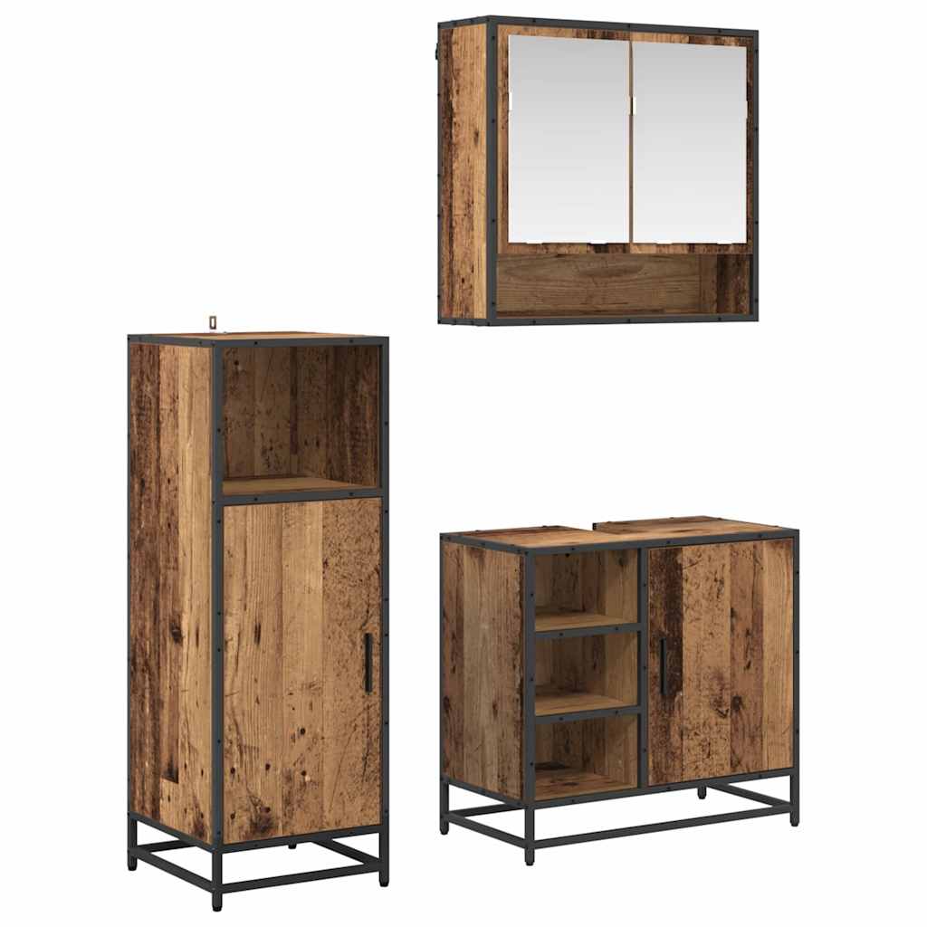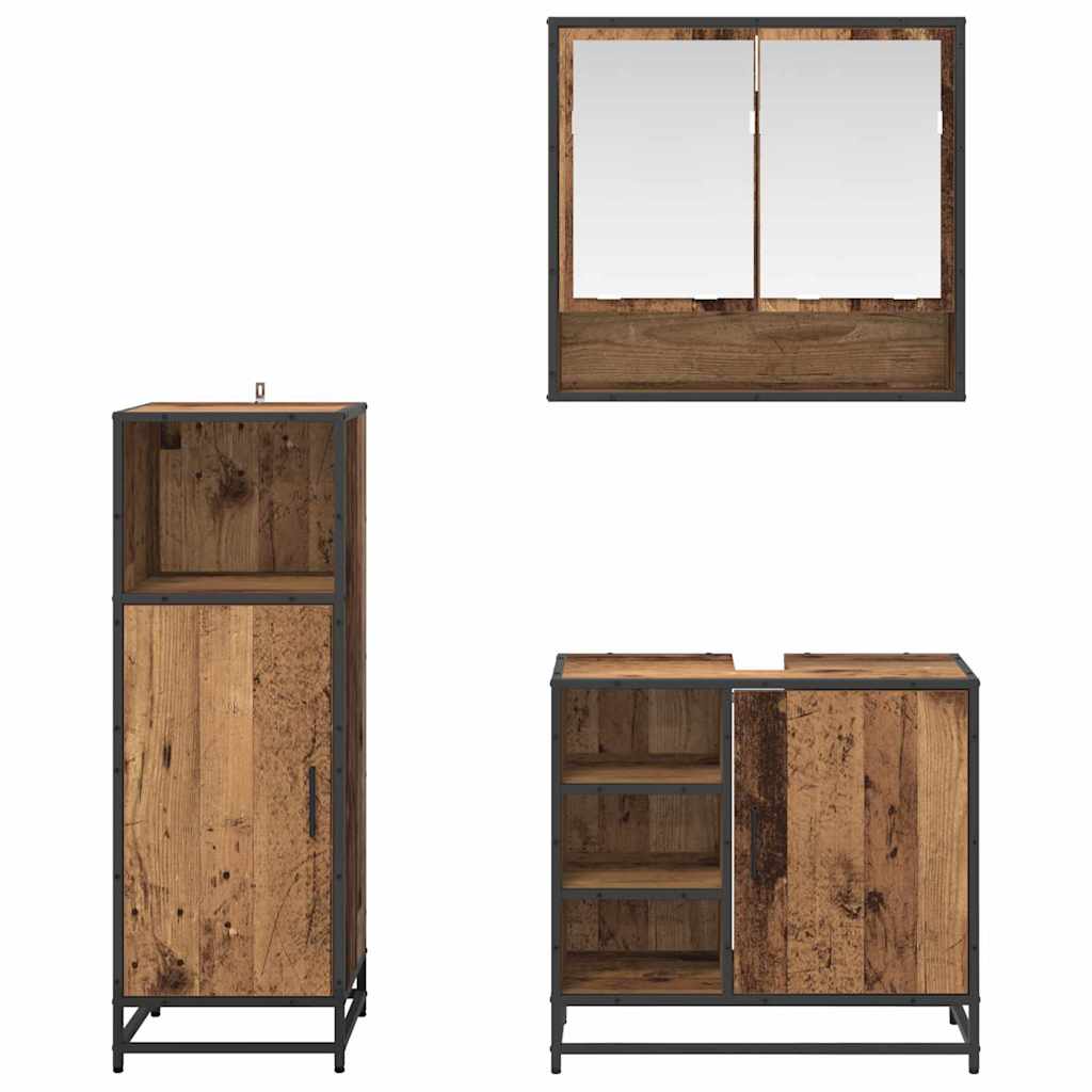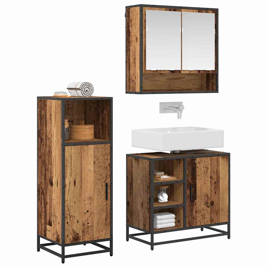 This Modern Bathroom Furniture Set offers a sophisticated touch to your interior with a simplistic yet highly functional design. Crafted for those who cherish clean lines and minimalist decor, this set provides a reflective retreat ideal for various bathroom layouts. Its streamlined appearance is accommodating for small to spacious bathrooms, seamlessly integrating with your home’s existing style while offering functional use for individuals, families, or guests. The engineered wood finish adds a warm texture, making it a versatile enhancement to any bathroom. It is specifically designed for personal hygiene and storage solutions, suitable for modern homes or chic apartments. Materials: Constructed from engineered wood, this bathroom set offers a robust and sophisticated appearance while ensuring durability. The quality of engineered wood provides resistance to humidity and other bathroom conditions, enhancing both functionality and longevity. This material’s fine finish also offers easy maintenance, making it an excellent choice for busy households. Included Components: The set includes a mirror cabinet, sink cabinet, and an elevated bathroom cabinet. Each component, designed with precision, offers distinct features such as flush doors and board shelves, which enhance organization and access. The mirror cabinet serves dual purposes, with plane mirrors providing clear reflections and subtle enhancements to the room’s brightness and space perception. Features /Function /Design: Exhibiting a modern design, this furniture set is ample with storage, offering well-organized compartments for toiletries and personal items. The flush doors with black bar handles deliver an elegant touch, while the wall-mounted design is perfect for saving precious bathroom space and maintaining cleanliness. Recommended Uses: Ideal for bathrooms in modern residences or urban apartments, this set integrates storage solutions and aesthetic elements effortlessly. The units can fit into varied decor settings and bring convenience to compact spaces, making them an excellent choice for functionality without clutter. Care &Maintenance: Simple upkeep is required to retain its pristine finish. Routine cleaning with a damp cloth ensures the surface stays fresh and free of stains. Proper care with occasional checks for fastening tightness ensures this set remains a staple in your bathroom space.