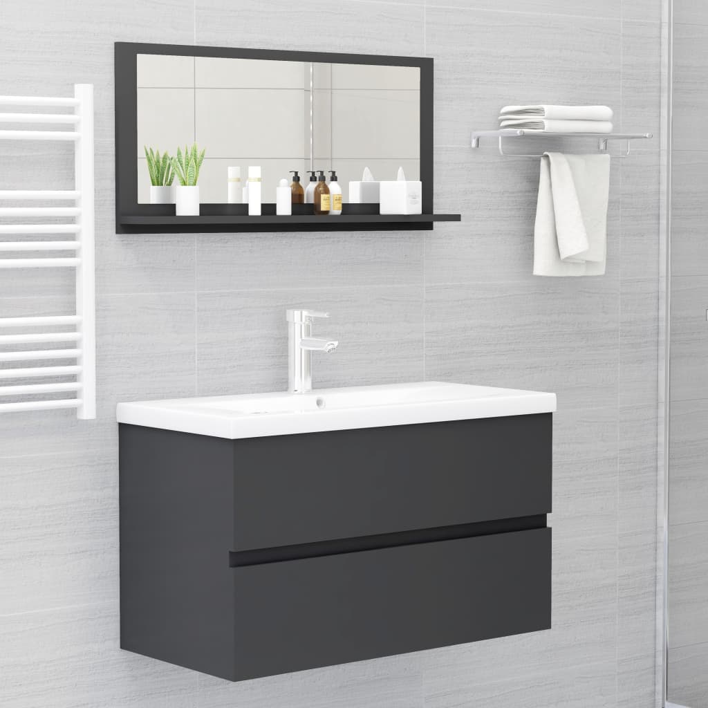 Bathroom Mirror Grey 80x10.5x37 cm Engineered Wood – Modernique