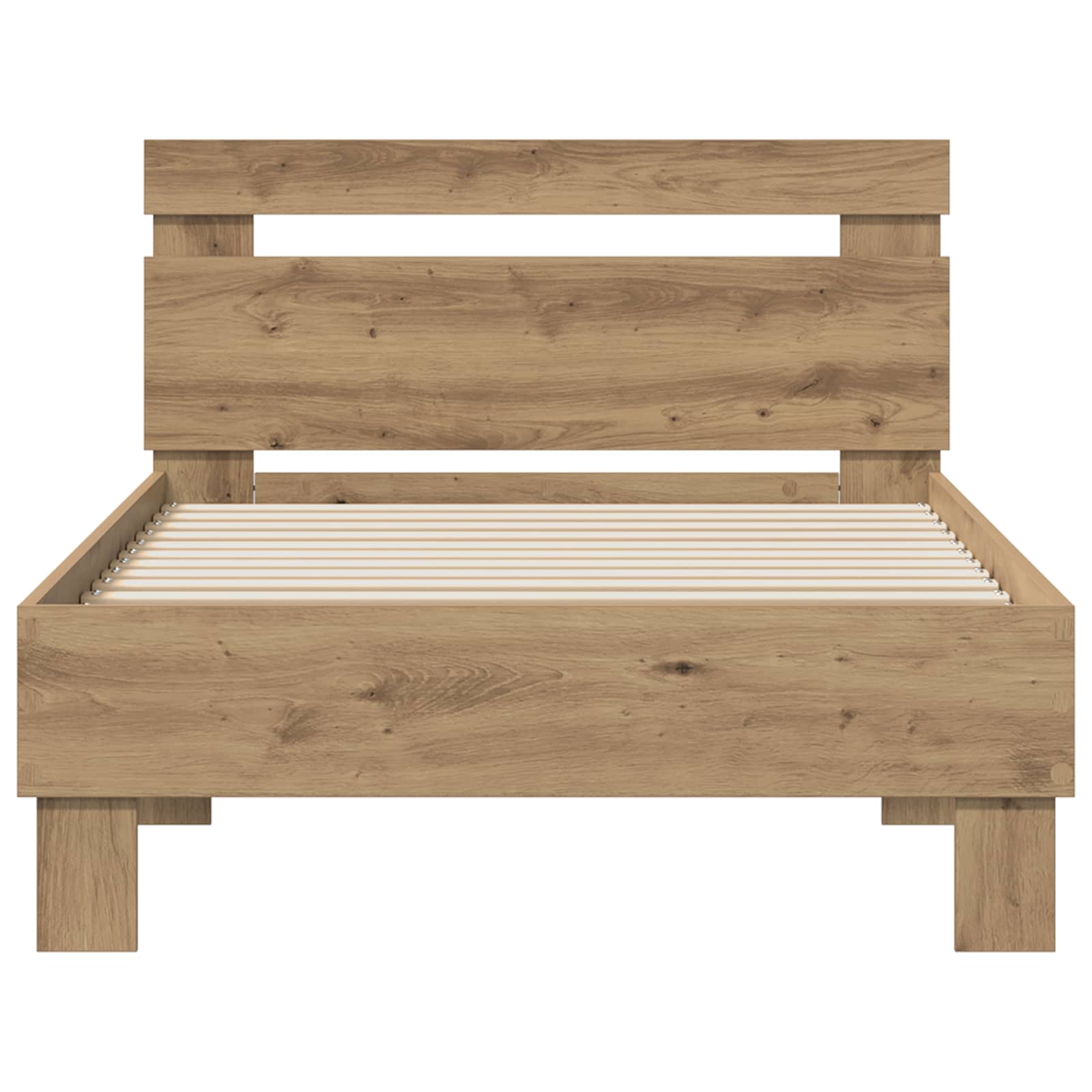 This modern bed frame transforms your bedroom into a contemporary haven with its minimalist aesthetic and clean lines. Made from engineered wood, the frame offers a solid feel that promises years of reliable use. Its sleek design complements various décor styles, providing a refreshing look to both small and spacious rooms. Whether its purpose is a retreat for relaxation or a chic addition to your home design, this bed frame adapts to various interior atmospheres with elegance and ease. Experience heightened comfort and sophistication with a structure that's as functional as it is stylish. Engineered Wood Craftsmanship This bed frame is crafted entirely from engineered wood, boasting a refined surface that resists scratches and over time. This material choice ensures this piece remains a sturdy and stylish fixture in your home, blending strength with a modern look that suits various environments. Integrated Headboard The headboard, crafted from the same engineered wood, offers reliable back support, enhancing comfort during reading or lounging. This simple yet effective design ties the piece together, solidifying its modern appeal while contributing to user relaxation. Simple Assembly Required Designed for straightforward setup, two people using a screwdriver can easily assemble this frame. This convenience streamlines the move-in process, ensuring your relaxation space is ready in no time without additional hassle. Minimal Care Maintenance is a breeze as the frame merely requires wiping with a damp cloth for upkeep. This no-frills maintenance ensures that your bed frame maintains its handsome appearance year-round with minimal effort. Indoor Use Only Perfectly suited for the bedroom, this frame is designed for indoor stability, making it an ideal fixture for your primary or guest room accommodations, enhancing sleep spaces with its clean-cut design.