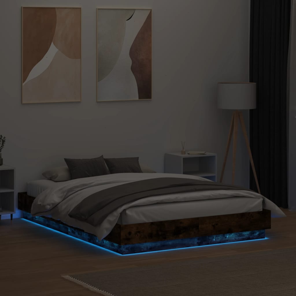 Bed Frame with LED Lights Smoked Oak 120x190 cm Small Double – Modernique