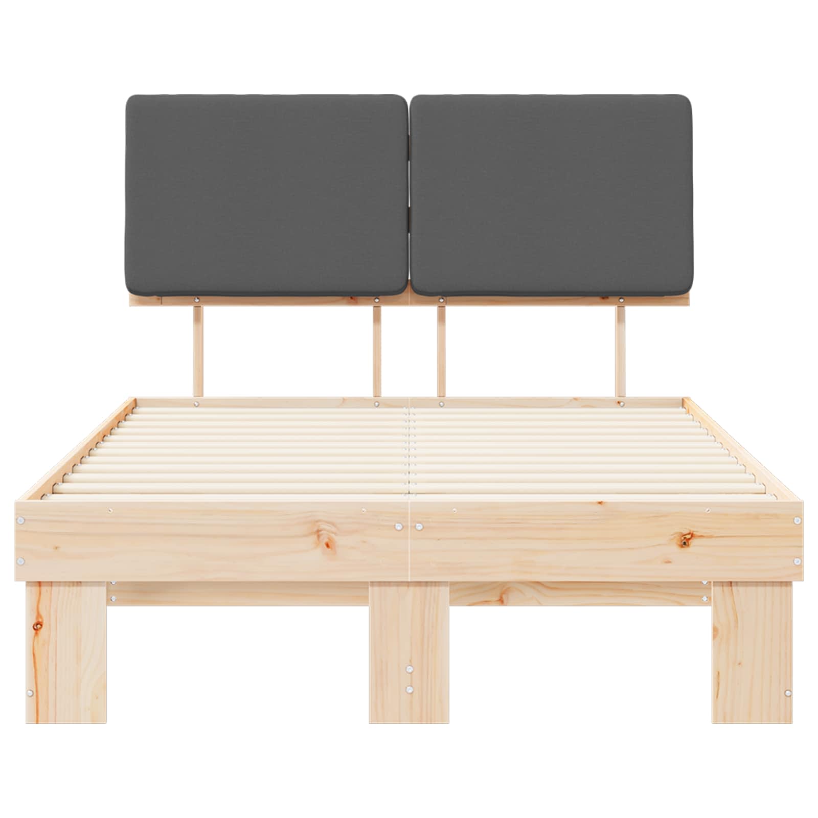 This Wooden Bed Frame with Upholstered Headboard exemplifies modern design, combining simple lines with functional elegance, perfect for contemporary bedrooms. Crafted for indoor use, its solid pine wood structure provides a stable and stylish centerpiece, inviting both rest and visual harmony. The upholstery on the headboard adds a soft contrast, bringing both aesthetics and comfort to the room's ambiance. Materials: The bed frame is meticulously crafted from solid pine wood, renowned for its strength and natural beauty. This material not only provides dependable, long-lasting support but also adds a touch of warmth and elegance to any bedroom setting. It's an ideal choice for those looking for a blend of aesthetics and robustness. Included Components: Featuring an upholstered headboard, this bed frame offers both visual appeal and additional comfort. The plush foam filling in the headboard provides a cushioned surface to rest against, enhancing the bedtime experience. This thoughtful inclusion ensures every night is met with comfort and style. Functional Features: With a platform slatted frame, this bed offers firm support for mattresses without the need for a box spring. The platform ensures optimal weight distribution and stability, enhancing mattress life and providing restful sleep. This design caters to modern preferences for simpler, low-profile bedding solutions. Recommended Uses: Ideal for indoor settings, especially in bedrooms, this bed frame complements various décor themes. Its understated style makes it a versatile choice for urban apartments, houses, or guest rooms, meeting the needs of a contemporary lifestyle. Care &Maintenance: Maintain the bed frame's pristine condition by wiping with a damp cloth. This simple routine ensures longevity and preserves its appeal over time. Easy maintenance means more time enjoying your tranquil bedroom space.