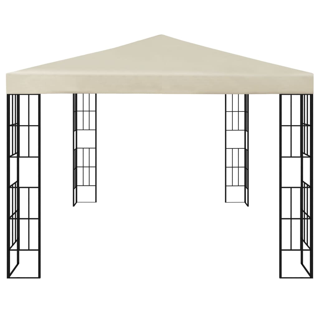 This spacious gazebo will make an elegant addition to your outdoor living space while keeping your family and guests cool and shaded on sunny days. The vented canopy will keep the sun and rain from spoiling the fun at family gatherings, barbecues, afternoon picnics, and birthday parties. The party tent has a sturdy steel construction with decorative square details and a polyester roof. The canopy has reinforced corners and hook and loop fasteners with which it is easily attached to the gazebo's frame. Note: The gazebo has not been designed as a permanent structure and it is not recommended to use it in extreme weather conditions.