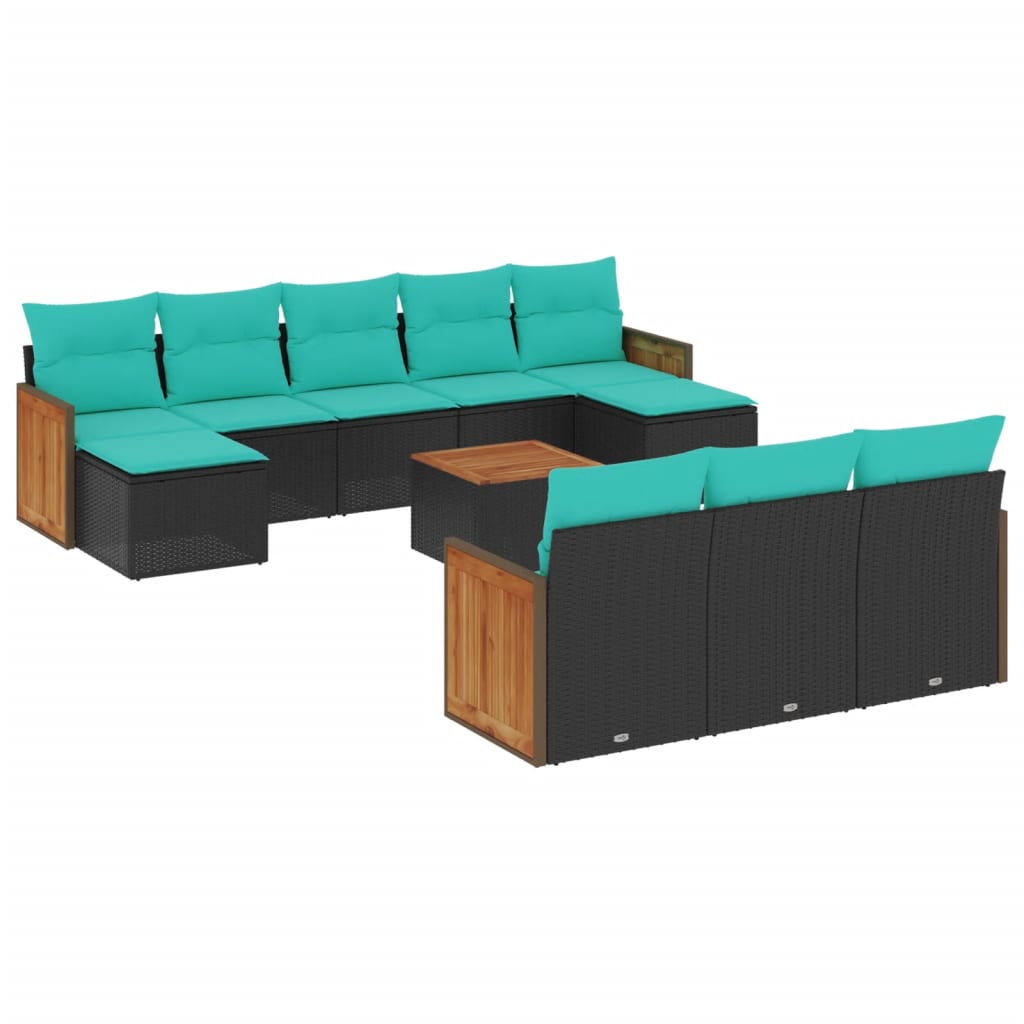 This garden sofa set is the perfect addition to your backyard, terrace, or patio, providing a comfortable and inviting space for chatting with family and friends or simply relaxing and enjoying the outdoors. Durable material: PE rattan, also known as poly rattan, is a strong, low-maintenance synthetic material that looks like natural rattan. It's lightweight, easy to clean, and commonly used for outdoor furniture due to its durability and weather-resistant properties.Comfortable seat experience: This outdoor furniture, complete with thickly padded cushions, offers a comfortable seating experience.Stable and easy-to-clean tabletop: This garden table has an acacia wood top that is sturdy, durable, and easy to clean with a damp cloth.Removable and washable cover: These seat cushions feature removable covers for easy washing and maintenance.Modular design: This outdoor furniture set has a modular design, making it completely flexible and easy to move around, so you can create a customised outdoor furniture arrangement. Good to know:To make sure your outdoor furniture stays beautiful, we recommend protecting it with a waterproof cover.