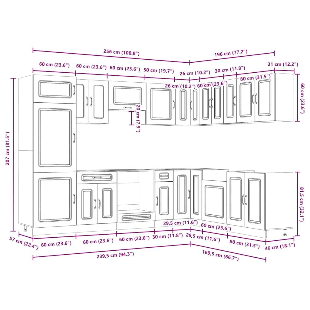 14 Piece Kitchen Cabinet Set Kalmar Gloss White Engineered Wood