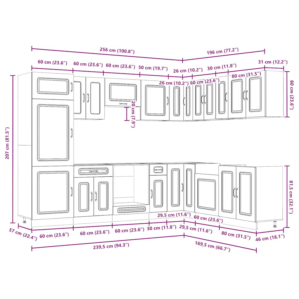 14 Piece Kitchen Cabinet Set Kalmar Old Wood Engineered Wood