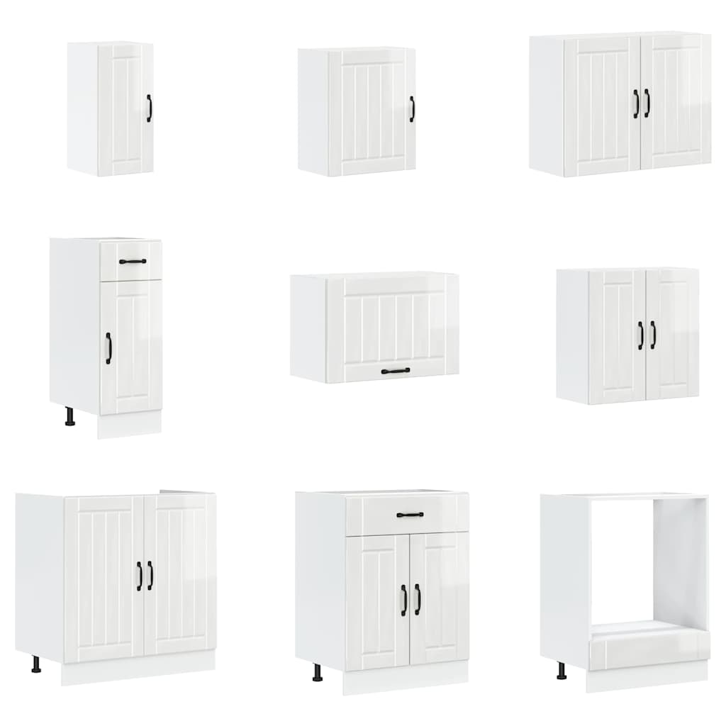 14 Piece Kitchen Cabinet Set Lucca Gloss White Engineered Wood – Modernique