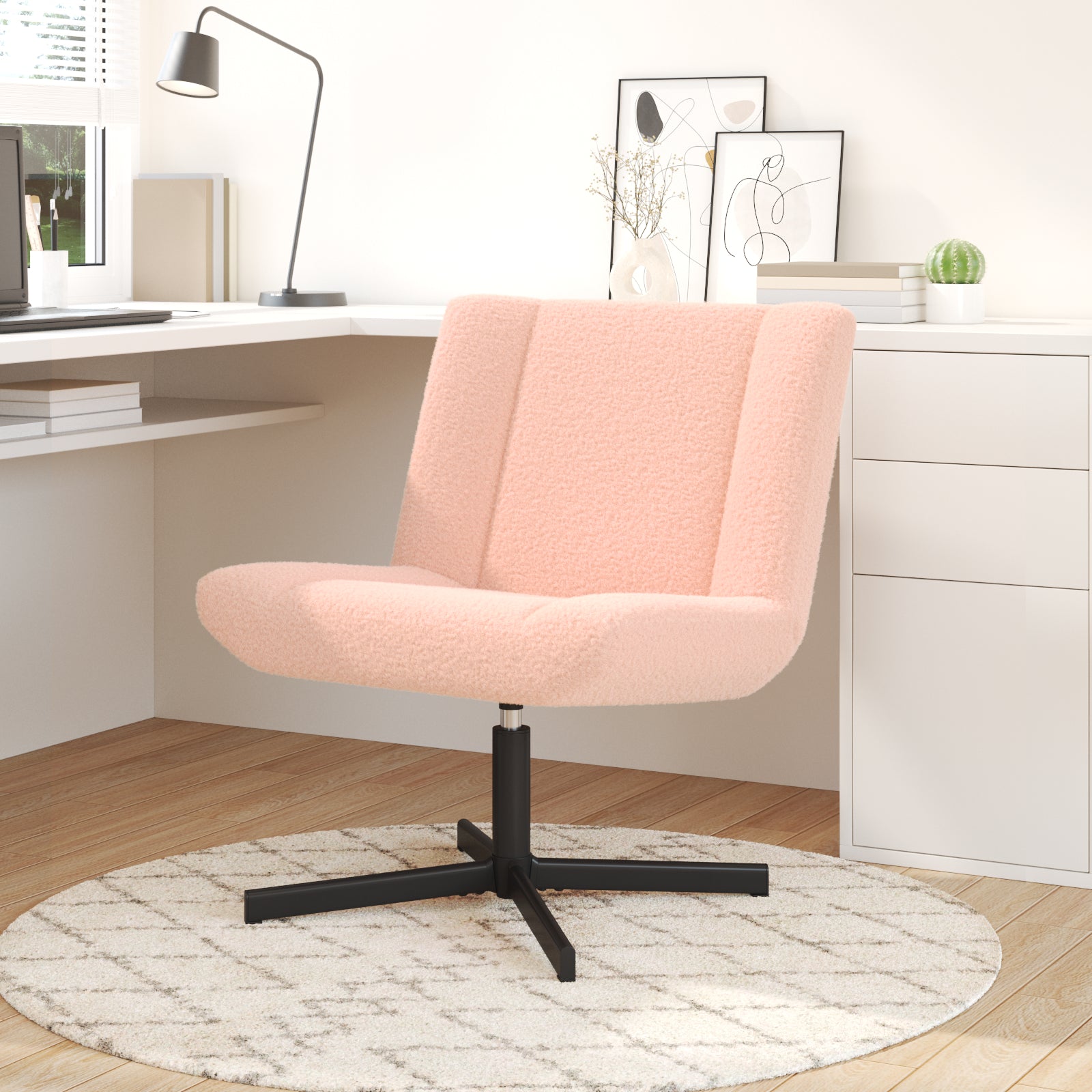 Accent Chair Baby Pink Polyester, Metal Standard Swivel