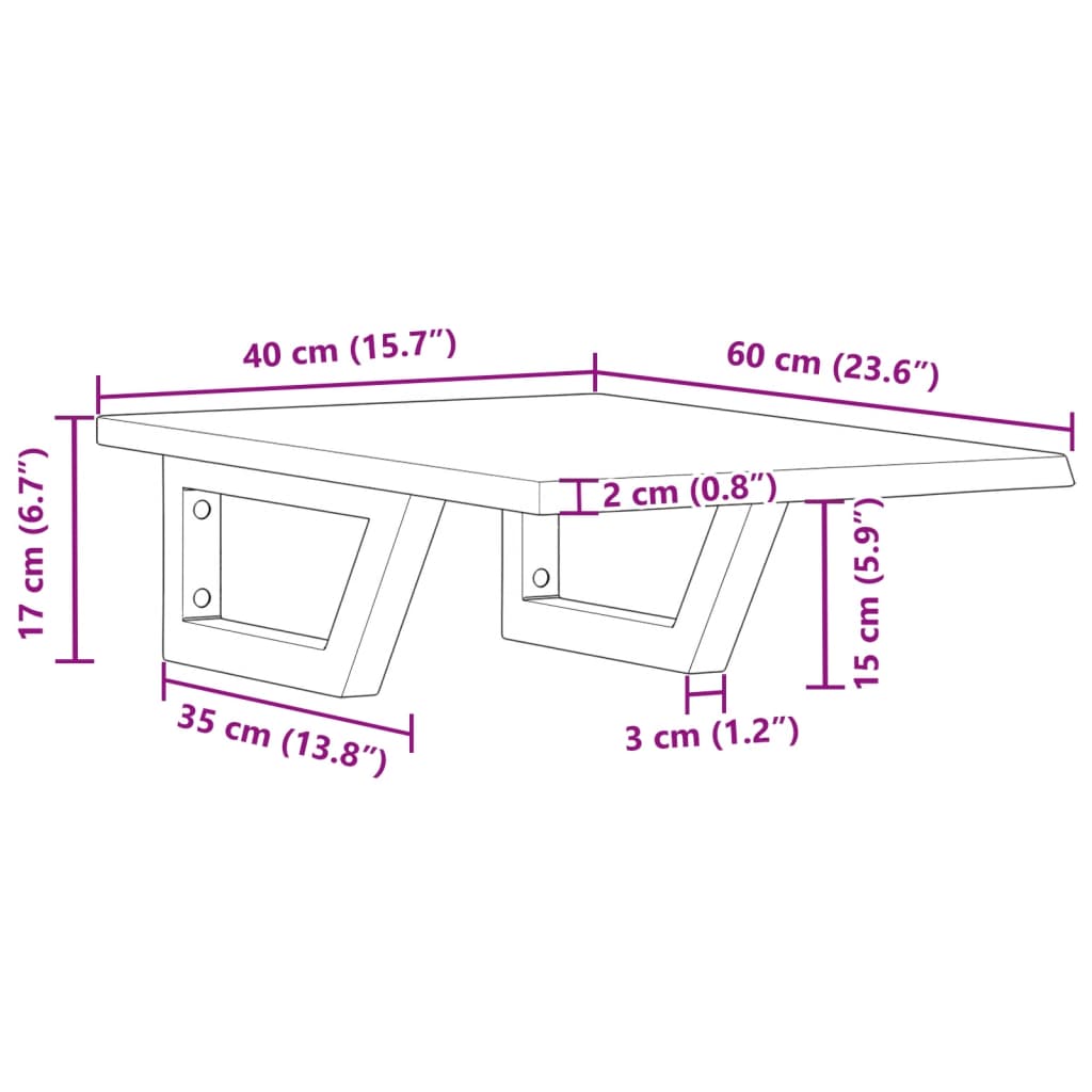 - Shelf bracket size: 15 x 35 cm (W x L)