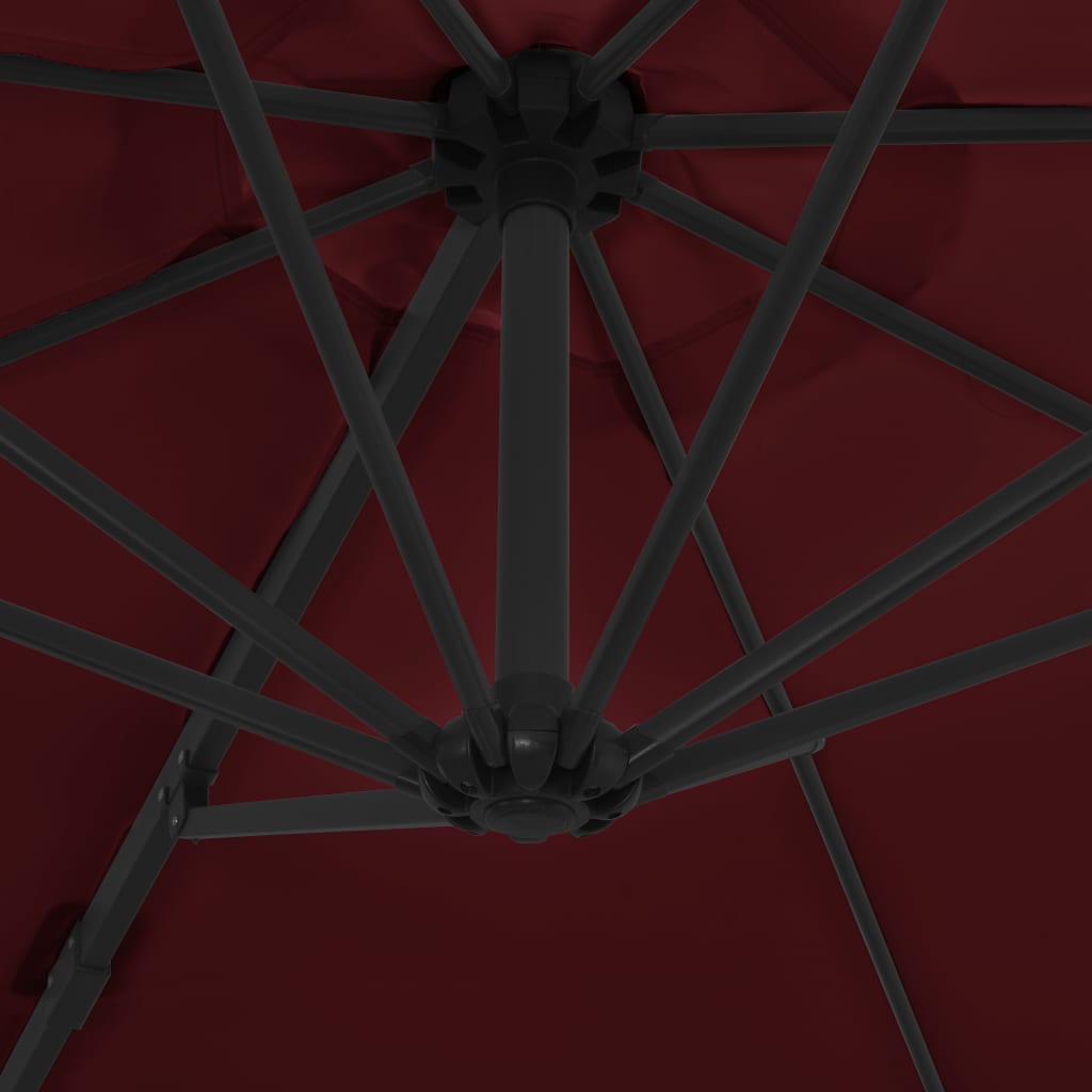 This elegant hanging parasol is perfect to create some shade and protect you from the sun's harmful UV rays. Made of UV protective and anti-fade polyester, the parasol cover provides you with optimum protection against the sun and is easy to clean. It features a sturdy cross base to add stability. The exclusive design of this parasol allows you to tilt and rotate it in 360 degrees to block the sun. The strong steel pole, along with the 8 durable ribs, makes the parasol very stable and durable. This garden umbrella can be easily opened and closed thanks to the crank mechanism. Please note that we recommend treating the umbrella fabric with a waterproofing spray if it is subjected to heavy rainfall.