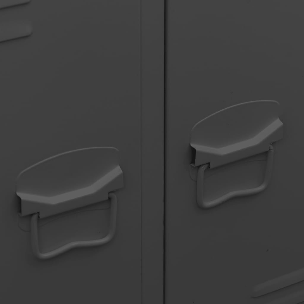 This practical wardrobe not only presents a perfect storage solution, but also makes a unique decorative addition to your home with its cool, industrial style. The storage cabinet is made of steel, making it durable and easy to clean. This closet has 2 adjustable shelves that allow you to neatly sort your clothes into different categories and 2 drawers for storing and organising your socks, underclothes, etc. The drawers with 2 sections ballbearing runners ensure smooth opening and closing, even under increased load (drawers can be fully extended). Each door has a name card holder and ventilation holes to add to its industrial look.