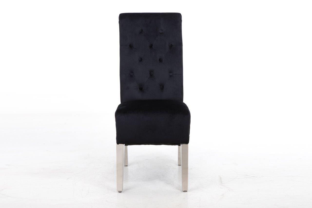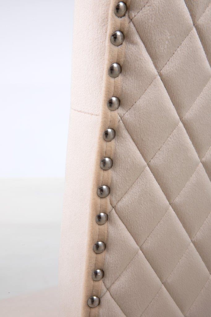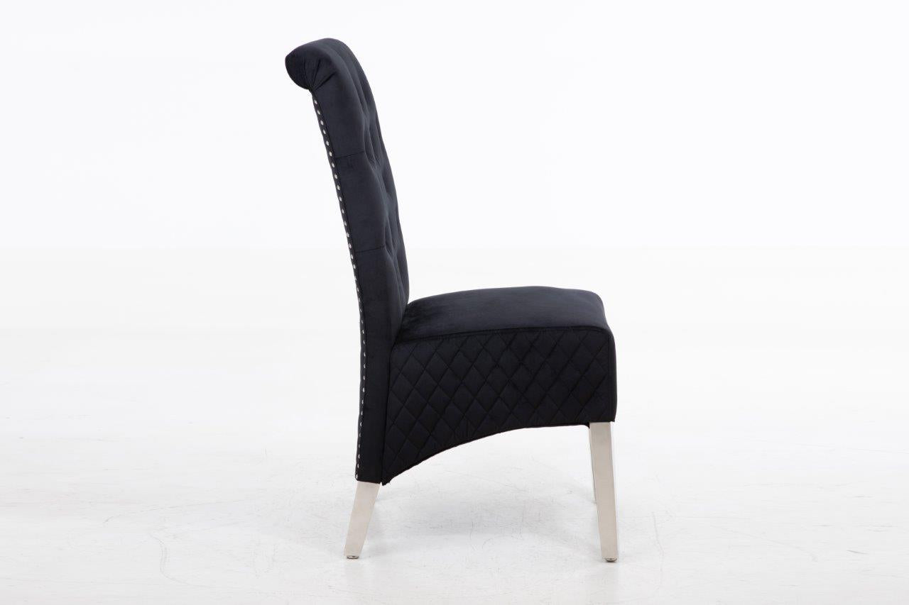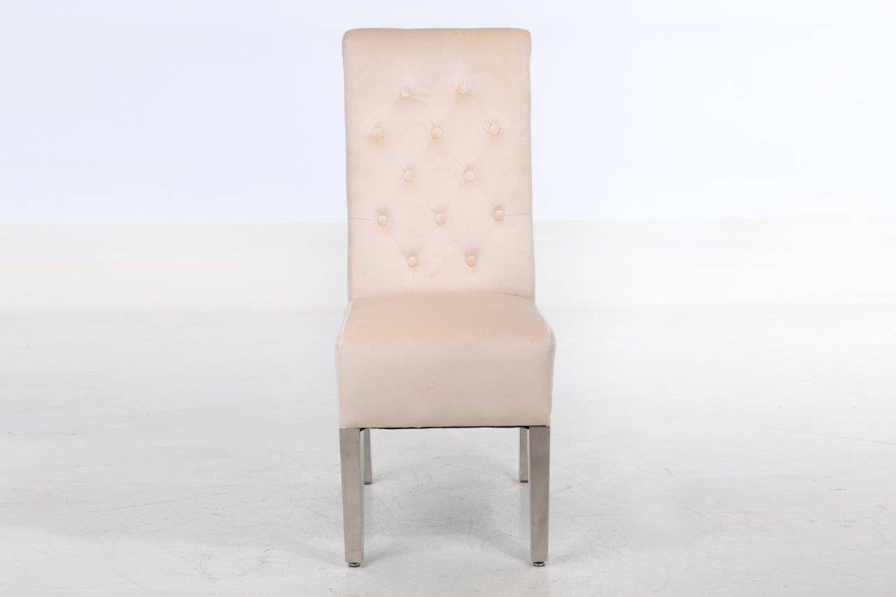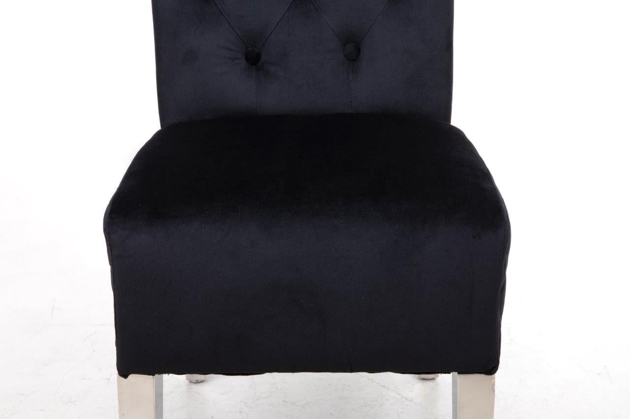 The soft cushioned seat offers a supreme level of comfort found nowhere else. Stunning classic design with accent button stitch detailing on the backrest ~ as it pinches in the dreamy, plush velvet, it creates accent tones of light and dark which are irresistible! Compact design which doesn't require much space! Soft to the touch but equally hard-wearing, of course! Made from smooth velvet and Stainless Steel Metal Legs. Complemented with Study Steel frame nail head stud and lion head knocker detail - the best combination you could find! Featuring serpentine sprung seating support with foam cushioning for long-lasting comfort - our speciality! Every single chair is individually hand-crafted by using traditional techniques for the ultimate quality - what else were you expecting? These chairs require minimal home assembly with only the legs to attach and no tools needed - we won't make you wait any longer to start using it! Modify your dining room, living room, bedroom or even your office space with this extraordinary design! Composed of the finest materials: polyester, sponge padding, natural rubber wood legs and a wooden frame - all finished to the highest quality you could find! Supreme quality and great savings - nothing less than that!
