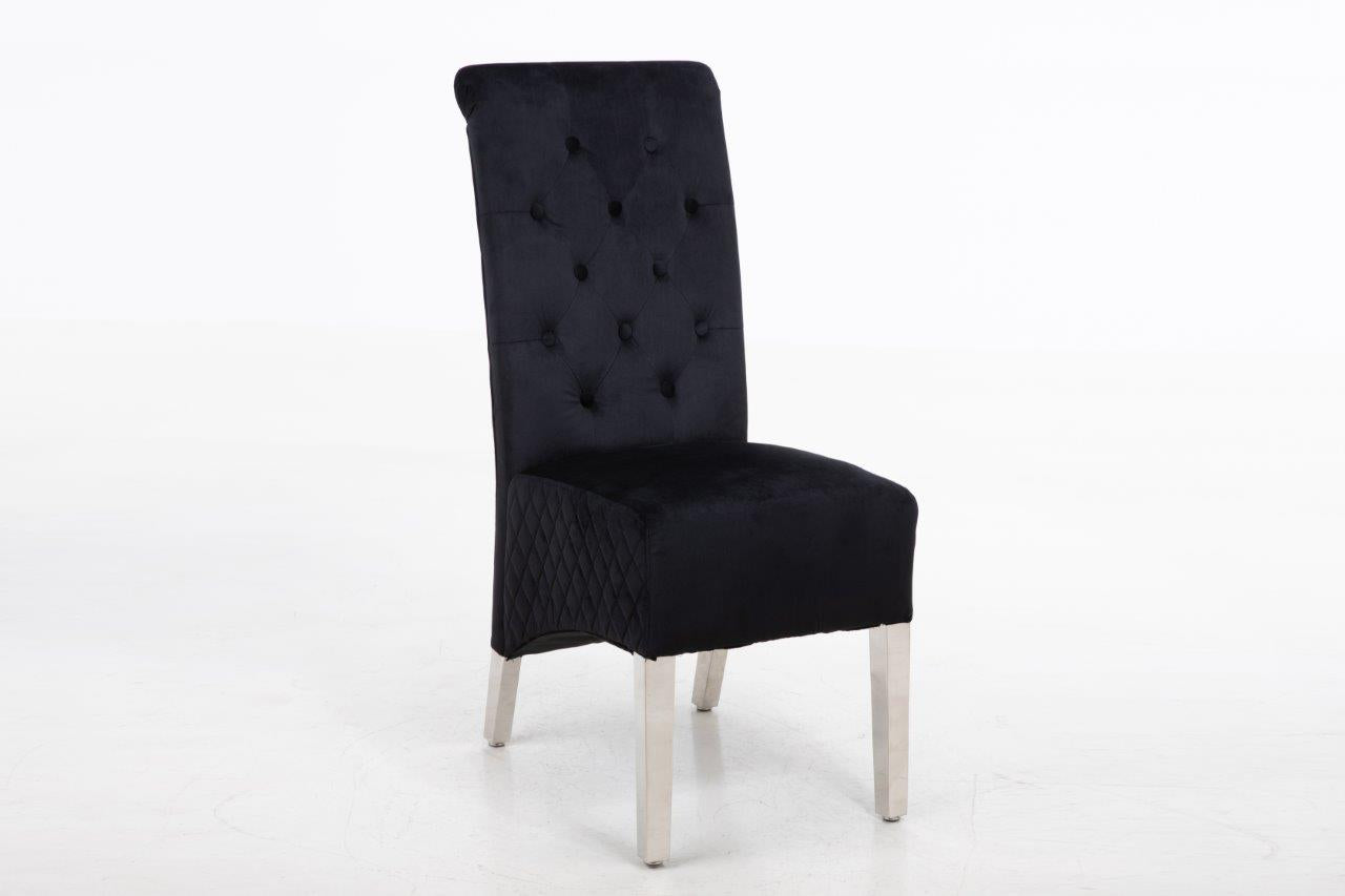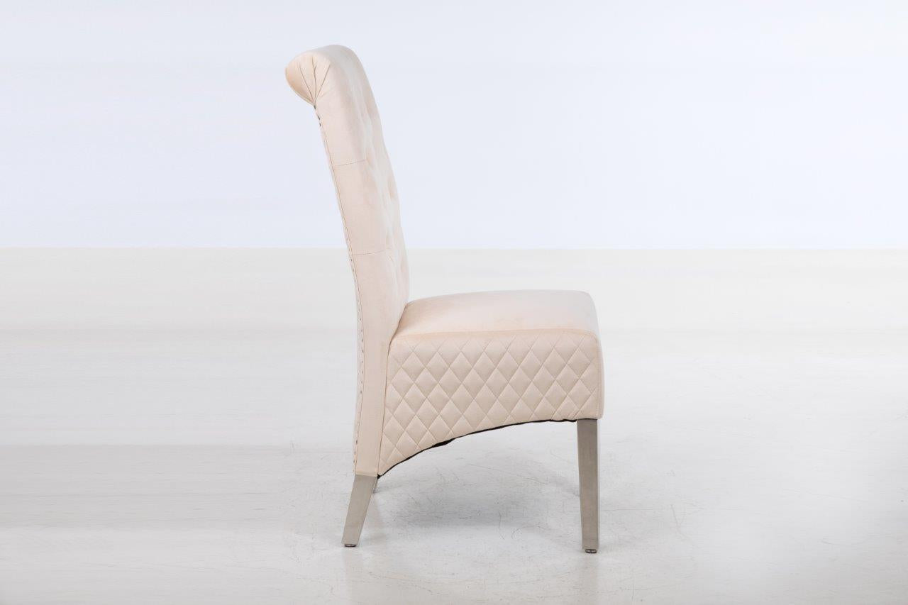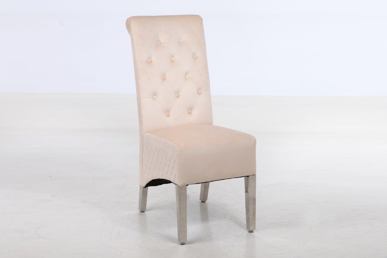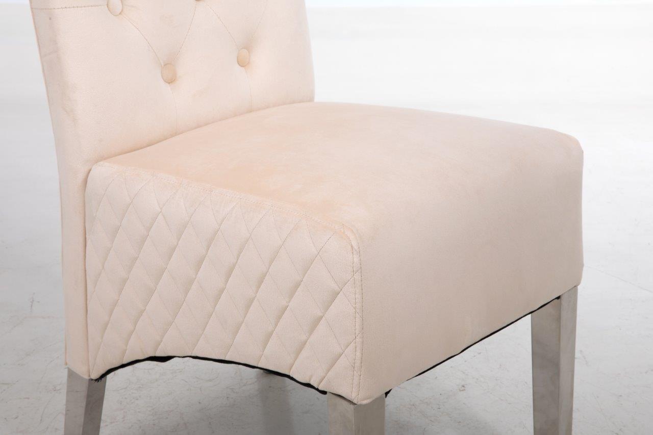 The soft cushioned seat offers a supreme level of comfort found nowhere else. Stunning classic design with accent button stitch detailing on the backrest ~ as it pinches in the dreamy, plush velvet, it creates accent tones of light and dark which are irresistible! Compact design which doesn't require much space! Soft to the touch but equally hard-wearing, of course! Made from smooth velvet and Stainless Steel Metal Legs. Complemented with Study Steel frame nail head stud and lion head knocker detail - the best combination you could find! Featuring serpentine sprung seating support with foam cushioning for long-lasting comfort - our speciality! Every single chair is individually hand-crafted by using traditional techniques for the ultimate quality - what else were you expecting? These chairs require minimal home assembly with only the legs to attach and no tools needed - we won't make you wait any longer to start using it! Modify your dining room, living room, bedroom or even your office space with this extraordinary design! Composed of the finest materials: polyester, sponge padding, natural rubber wood legs and a wooden frame - all finished to the highest quality you could find! Supreme quality and great savings - nothing less than that!