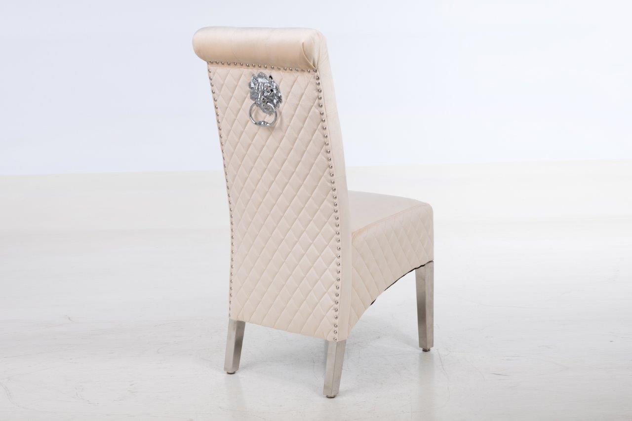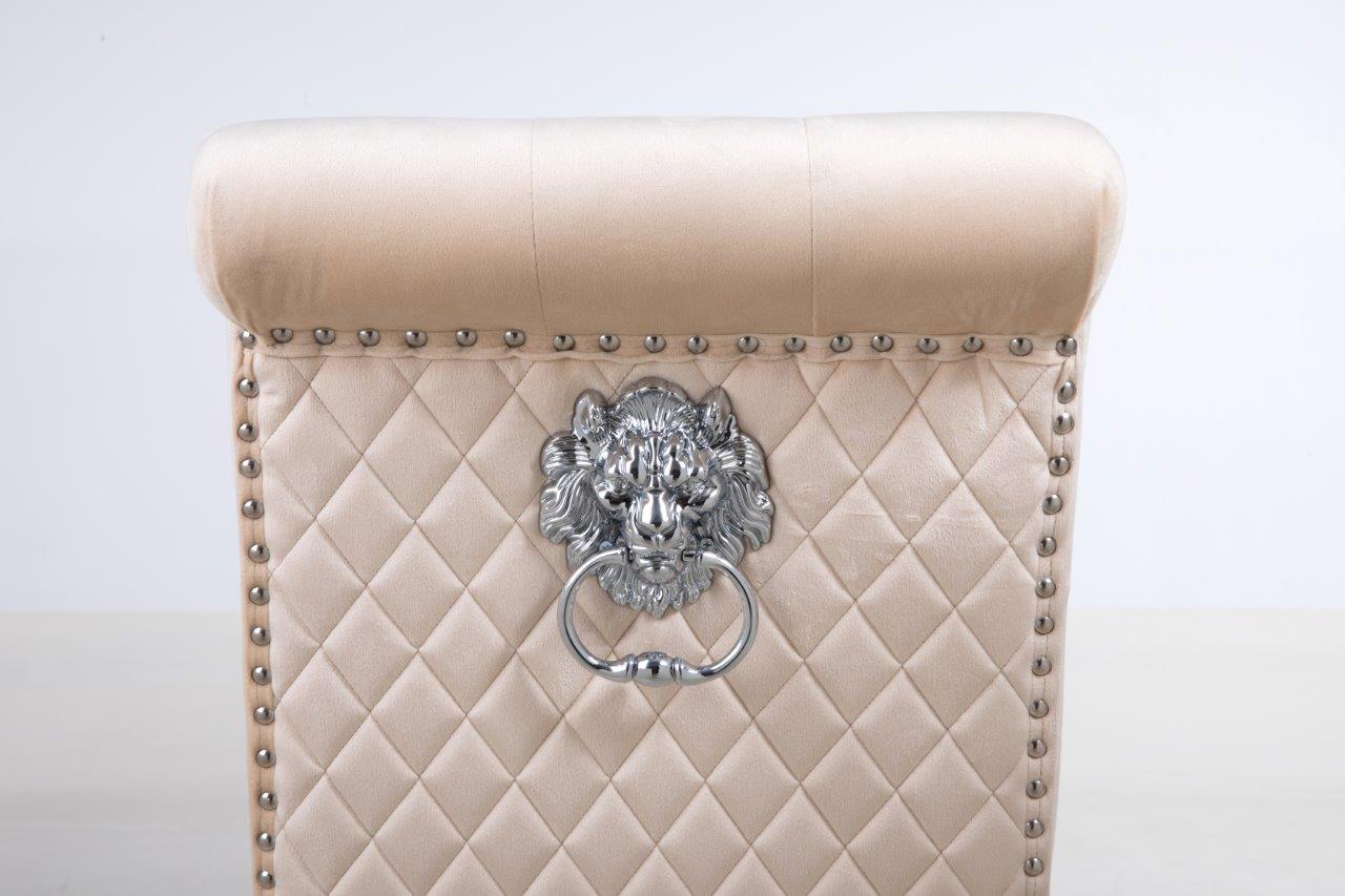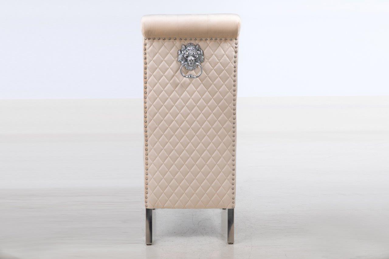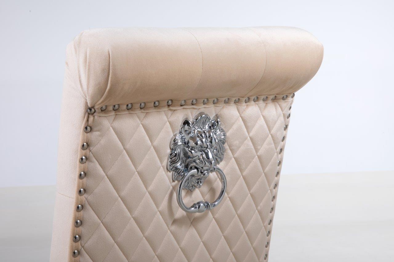 - Complemented with Stainless Steel Legs Frame, nail head stud and lion head knocker detail - the best combination you could find! Featuring serpentine sprung seating support with foam cushioning for long-lasting comfort - our speciality! Every single chair is individually hand-crafted by using traditional techniques for the ultimate quality - what else were you expecting!