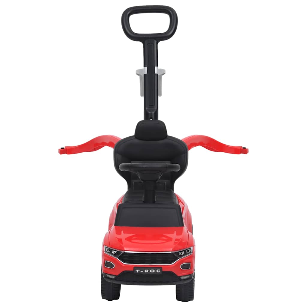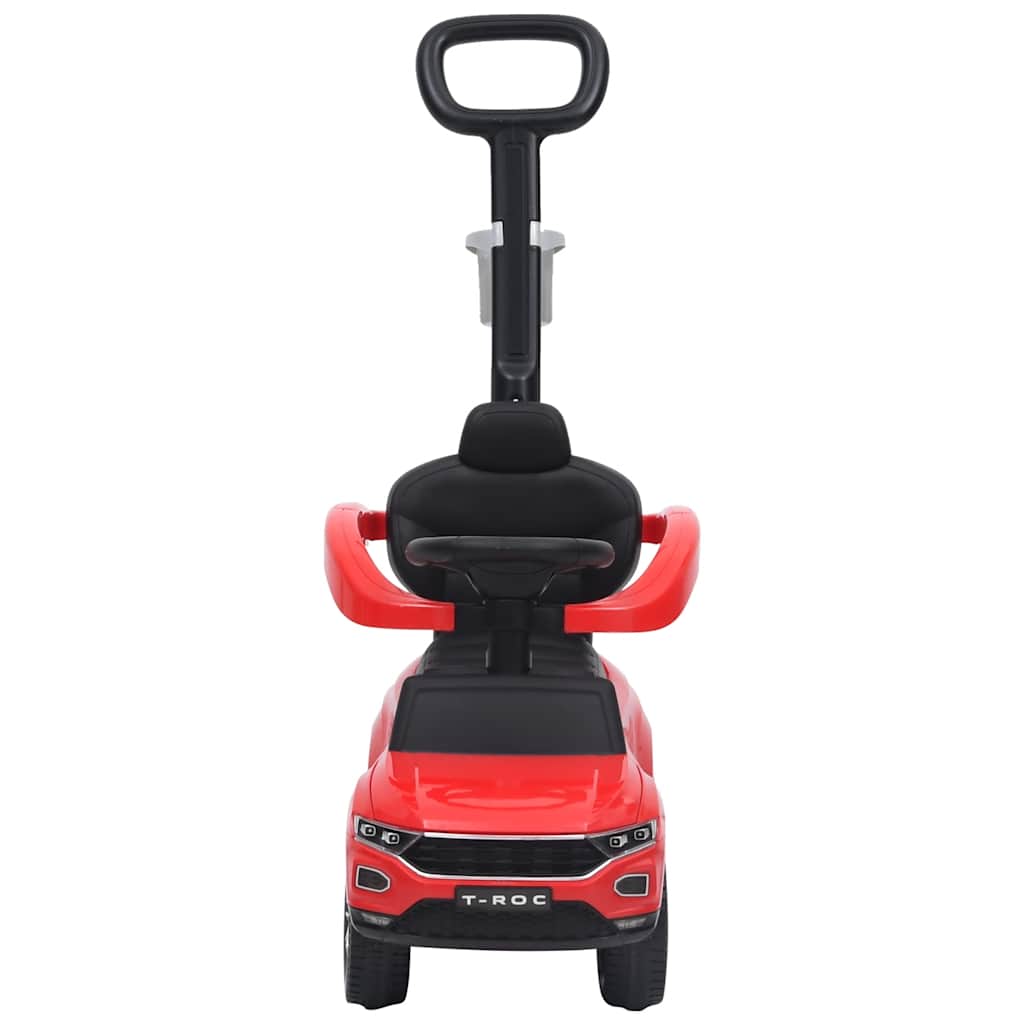 Let your little ones have fun driving with this Volkswagen step car. It has been officially licensed by Volkswagen. The protective bars and the push bar can be removed, depending on the size of the child. There is a cup holder on the push bar. Additionally, the storage space under the seat can accommodate a lot of toys and other supplies that your children would like to take along on their adventures. It can also play music for entertainment, which is activated by buttons on the steering wheel. Please note this car works with AA battery, and is not included in our delivery.