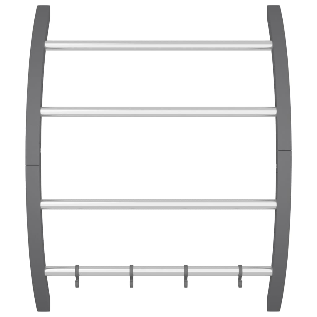 The trendy towel rack features a minimalist design, creating a simplistic and comfortable atmosphere in your bathroom. Sturdy frame: The aluminium frame of this towel holder ensures sturdiness and stability.Multiple usage: This towel ladder with 4 rods and 4 hooks provides a hanging place for towels and also can be used to hang other smaller objects, making your house tidier and more beautiful. Also, the rod spacing ensures good ventilation and cleanliness.Space-saving design: The towel shelf adopts wall-mounted design, which makes full use of your room space and provides you with extra storage space.