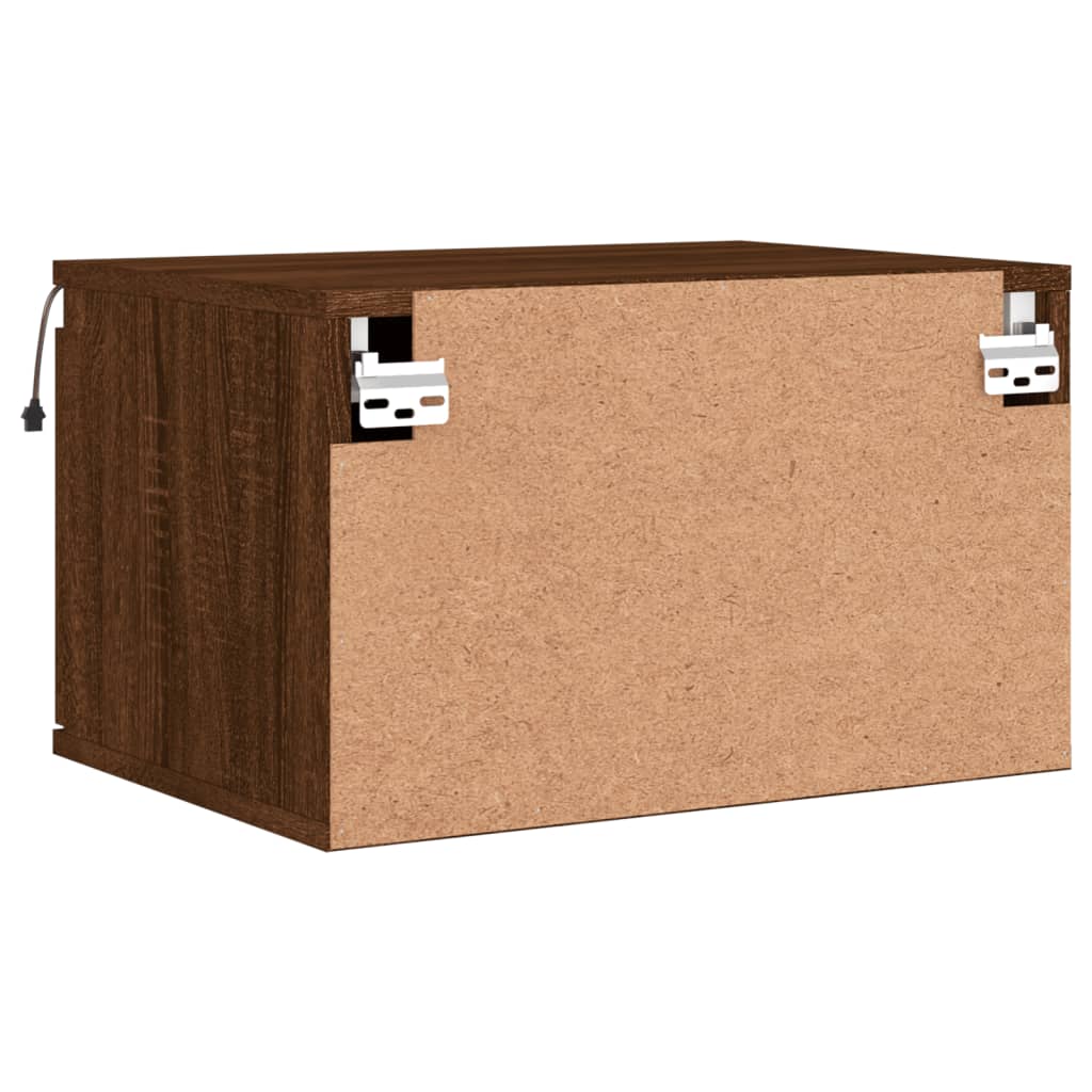 This wall-mounted bedside cabinet with LED lights is the perfect solution for your living space to maximise space and keep the floor areas clean. Durable material: The engineered wood is of exceptional quality with smooth surface and also features strength, stability and resistance to moisture. Made of engineered wood, the wall hung bedside cabinet is easy-to-clean.RGB LED lights: The floating bedside cabinet is equipped with vibrant RGB LED lights. With various customisable menus, you can effortlessly change the colour of the lights and even set them to adjust automatically. These LED lights not only enhance the contemporary look of the cabinet but also add to its trendy appeal.Wall-mounted design: This floating bedside unit can be wall-mounted to add extra storage space. That way, you can maximise your floor space and keep the area clean.Multifunctional cabinet: The bedside wall cabinet serves as the ideal place to put items such as books, collectables, ornaments, and more. It transforms an empty wall into a design feature. Good to know:Screws and plugs for inside the wall are not included. We advise to find and use screws and plugs suitable specifically for your walls. If you're not sure, you can consult with a professional. Please read and follow each step of the instructions.The product has a USB connector that requires a certified 5V USB power source (not included).