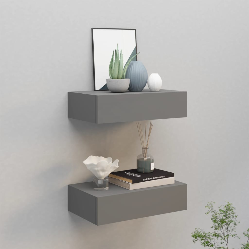 Wall-mounted Drawer Shelves 2 pcs Grey 40x23.5x10cm MDF – Modernique